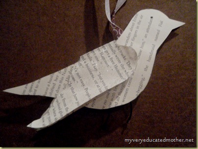 ReplyDeleteLovely bird ornament! A tree full of different book page ornaments would be so nice!